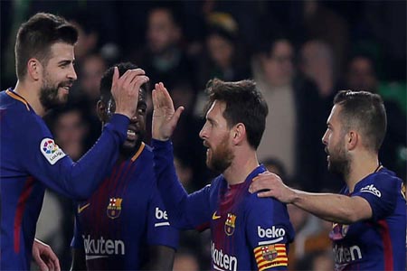 افراسيانت - أكد برشلونة رغبته الجامحة في استعادة لقب الليغا من غريمه التقليدي ريال مدريد بعد فوزه العريض 5-0 على مضيفه ريال بيتيس، امس، ضمن الجولة الـ20 من الدوري الإسباني لكرة القدم.