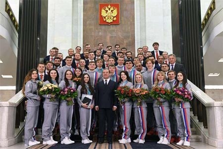 افراسيانت - كرّم رئيس مجلس الوزراء الروسي دميتري مدفيديف الرياضيين الروس الذين صعدوا على منصات التتويج خلال الأولمبياد الشتوي الذي استضافته مدينة بيونغ تشانغ الكورية الجنوبية.