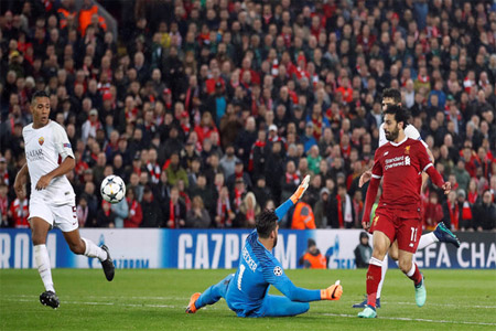 وسجل صلاح هدفين وصنع مثلهما ليصبح ليفربول على أعتاب العبور للنهائي للمرة الأولى منذ موسم 2006 -2007 عندما خسر على يد ميلان الإيطالي 1- 2.
