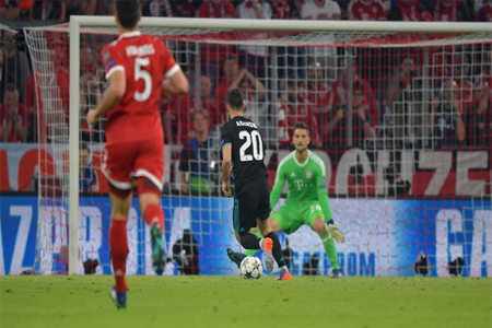 وتقدم بايرن بهدف حمل توقيع جوشوا كيميتش في الدقيقة 27، وتعادل الظهير الأيسر البرازيلي مارسيلو في الدقيقة 44 ،على عكس سير اللعب، ثم أضاف (البديل) ماركو أسينسيو الهدف الثاني للريال في الدقيقة 56.