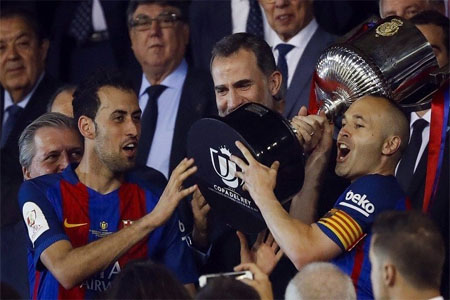 وعوض برشلونة خسارته لقب الدوري الإسباني "الليغا" لصالح منافسه ريال مدريد وخروجه من ربع نهائي دوري أبطال أوروبا أمام يوفنتوس الإيطالي عندما حافظ على لقب كأس إسبانيا.