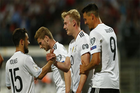 افراسيانت - أمطر منتخب ألمانيا شباك ضيفه سان مارينو بـ 7-0، محققا فوزه السادس على التوالي منذ انطلاق التصفيات الأوروبية المؤهلة لنهائيات كأس العالم 2018 بروسيا، ضمن منافسات المجموعة الثالثة.
