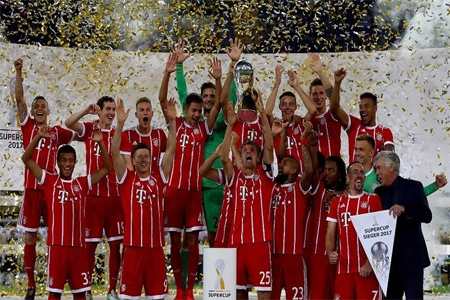 افراسيانت - توج بايرن ميونيخ بكأس السوبر الألمانية على حساب بوروسيا دورتموند بالفوز عليه بركلات الترجيح (5-4) بعد التعادل في الوقت الأصلي 2-2 ، امس.