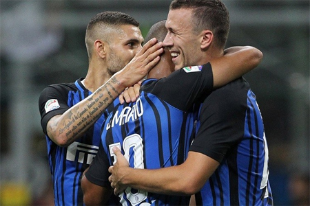 افتتح الإنتر الثلاثية عبر قائده الأرجنتيني ماورو إيكاردي أحد هدافي الموسم الماضي، من ركلة جزاء حصل عليها بعد عرقلته من قبل دافيدي استوري في (د.6).