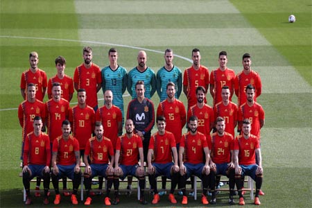 ولم تعقد مراسم لتقديم القميص، كما جرت العادة في السنوات الماضية، وتم الاكتفاء بالتقاط الصورة الرسمية التي ظهر بها كافة اللاعبين والطاقم الفني، وهم يرتدون القميص، قبل مران المنتخب الإسباني.