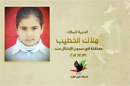 افراسيانت - ما زالت مصلحة السجون الصهيونية تمنع عائلة الأسيرة الطفلة ملاك الخطيب (14 عاما) من قرية بيتين في رام الله، (وهي أصغر أسيرة فلسطينية) من زيارة ابنتهم الأسيرة، منذ اعتقالها بتاريخ (31-12-2014)، وذلك بالرغم من صغر سنها.