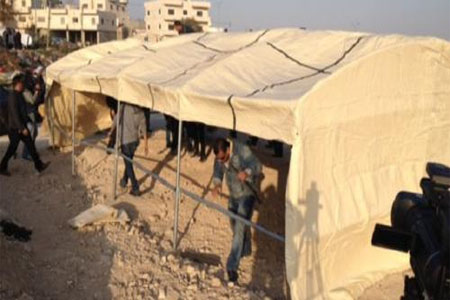 افراسيانت - نشطاء يعيدون بناء قرية بوابة القدس للمرة الثالثة على أراضي أبوديس شرقي القدس المحتلة بعد ساعات من هدم قوات الاحتلال لها.