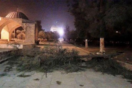 افراسيانت - ذكرت دائرة الاوقاف الإسلامية في القدس بأن عاصفة الرياح العاتية التي ضربت القدس الليلة الماضية تسببت بسقوط شجرتين مُعمّرتين: الأولى بالقرب من باب الملك فيصل (من أبواب الأقصى)، والثانية قرب باب الرحمة في المنطقة المعروفة داخل الاقصى باسم "الحُرش".
