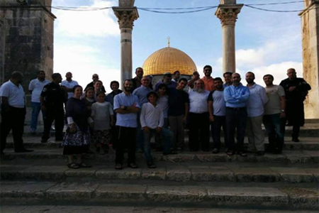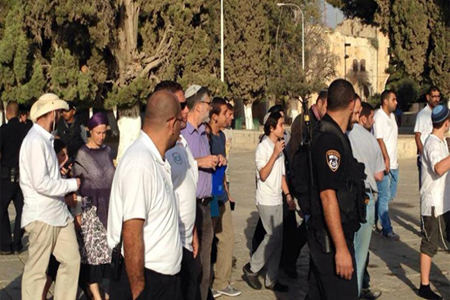 وأفادت مصادر مقدسية، بأن أكثر من 60 مستوطنا اقتحموا المسجد من جهة باب المغاربة، وتجولوا في ارجائه والتقطوا صورا جماعية أمام قبة الصخرة المشرفة، ثم خرجوا من باب السلسلة، حيث لاحقتهم تكبيرات كبار السن والنساء والاطفال المتواجدين في الاقصى، وصرخات النائب العربي في الكنيست جمال زحالقة في وجوههم قائلا، "انقلعوا من هون".