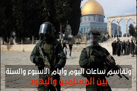 افراسيانت - رام الله - "القدس" دوت كوم - بكر عبد الحق - أثار اقتحام المسجد الأقصى من قبل المستوطنين والشرطة الخاصة للاحتلال، الأسبوع الماضي، وبالتزامن مع العشر الأواخر من شهر رمضان، مخاوف الفلسطينيين من استئناف الإحتلال لمساعيه بشأن فرض التقسيم الزماني والمكاني بين المسلمين واليهود، خصوصًا بعدما مُنع المستوطنون من اقتحام الأقصى لأشهر عديدة، في أعقاب اندلاع انتفاضة القدس في تشرين أول العام الماضي .