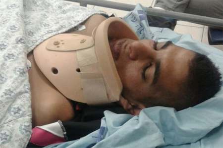 واوضح أنه تبين للاطباء انه اصيب بخلع في كتفه الأيسر ورضوض في أنحاء جسده، وأبلغوه بأنه سيرقد في المستشفى لمدة أسبوع للعلاج.