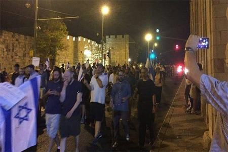 ونظم المئات من المستوطنين، في ساعة متأخرة من مساء الاثنين، مسيرة في شوارع القدس الشرقية في ذكرى ما يسمى "خراب الهيكل".