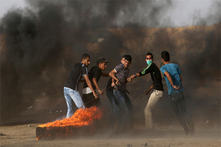 Israel’s military said Palestinians tried to damage the border fence, rolled burning tires and threw an explosive device at soldiers. It said troops responded with tear gas and live fire.